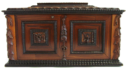 Kästchen mit Geheimfächern, evtl. Zunftlade der Bäcker? |
